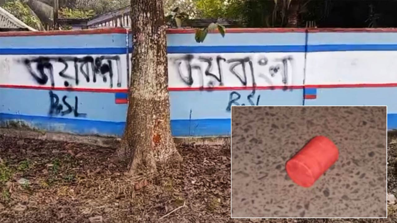 বগুড়ার নন্দীগ্রামে দেয়ালে জয় বাংলা লেখা : বোমা বিস্ফোরণ