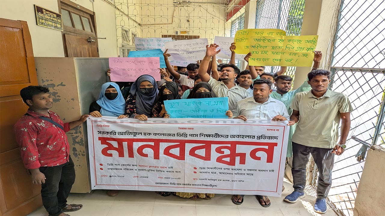 বগুড়া আজিজুল হক কলেজে অধ্যক্ষের কক্ষ অবরোধ করে ডিগ্রির শিক্ষার্থীদের বিক্ষোভ