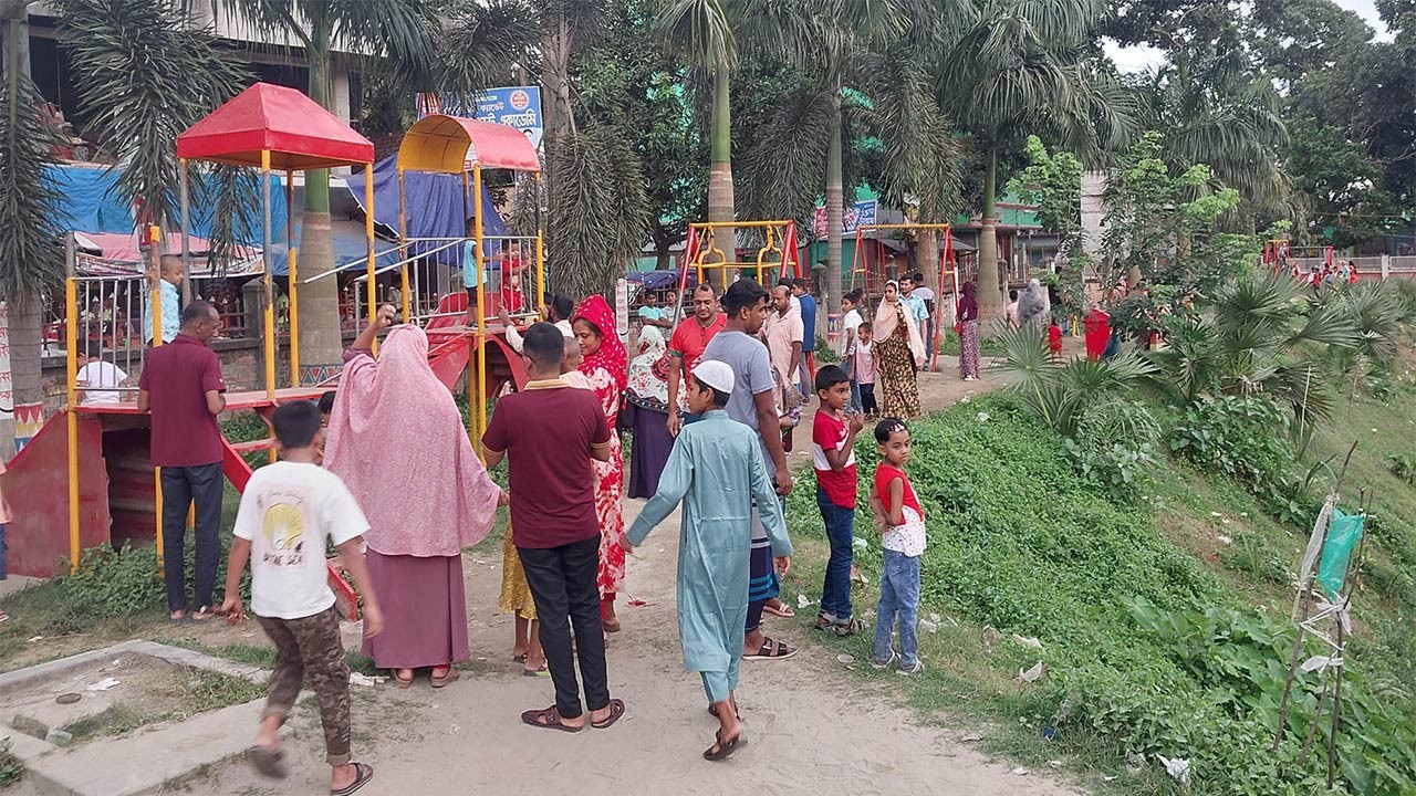 বগুড়ার ধুনট শহীদ মিনার চত্বরে দৃষ্টিনন্দন করে সাজানো হচ্ছে শিশু পার্ক