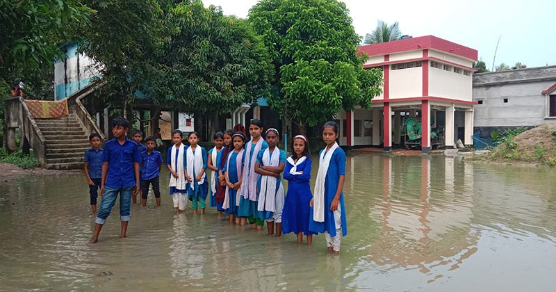সিরাজগঞ্জের রায়গঞ্জে শ্যামনাই স্কুল মাঠে জলাবদ্ধতায় শিক্ষার্থীদের দুর্ভোগ