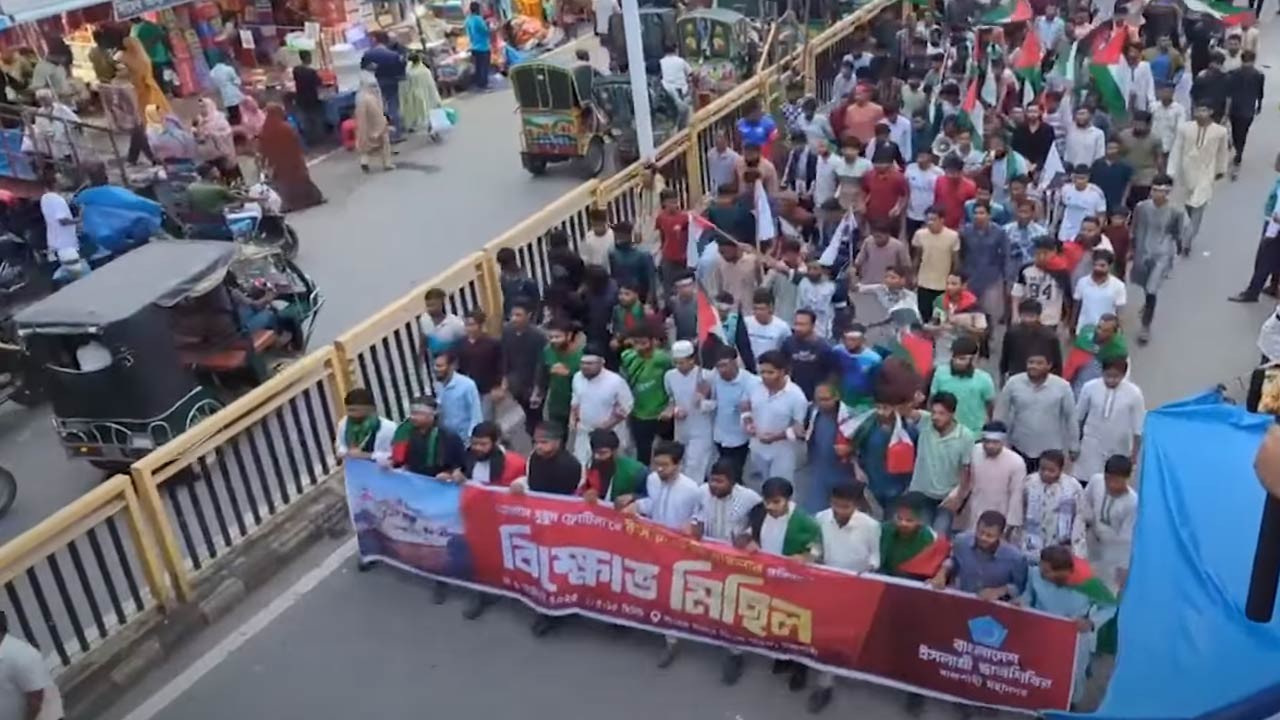 গাজাগামী ত্রাণবাহী জাহাজে ইসরাইলি হামলার প্রতিবাদে রাজশাহীতে ছাত্রশিবিরের বিক্ষোভ