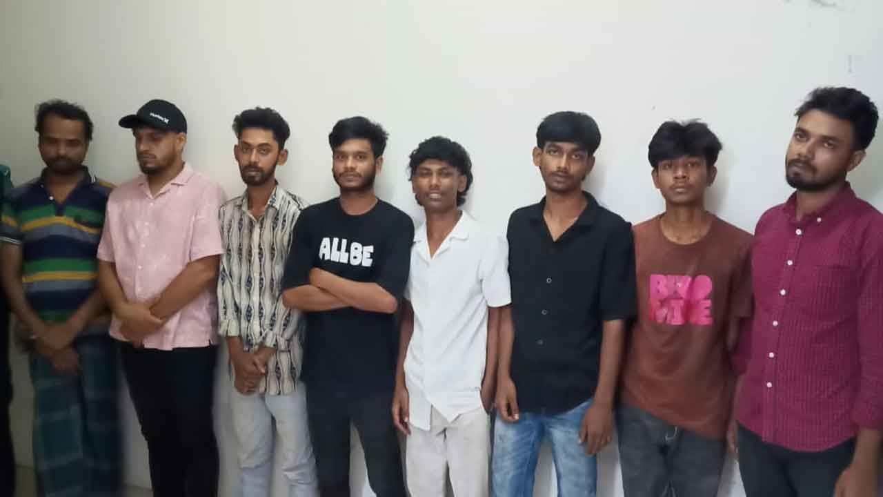 আরও পড়ুনগ্রেফতাররা হলেন মো. অমিত হাসান ওরফে রাব্বি (৩০), মো. আলী আকবর (৪২), মো. শফিকুর রহমান (৩০), সজিব সরদার (১৯), রাজিব তালুকদার (১৯), নূর মোহাম্মদ ওরফে বাপ্পি (১৯), মো. জিহাদ (১৯), মো. কাউছার (২৮), চাঁন মিয়া (২৫) ও মো.ওয়াসিম (২৪)।