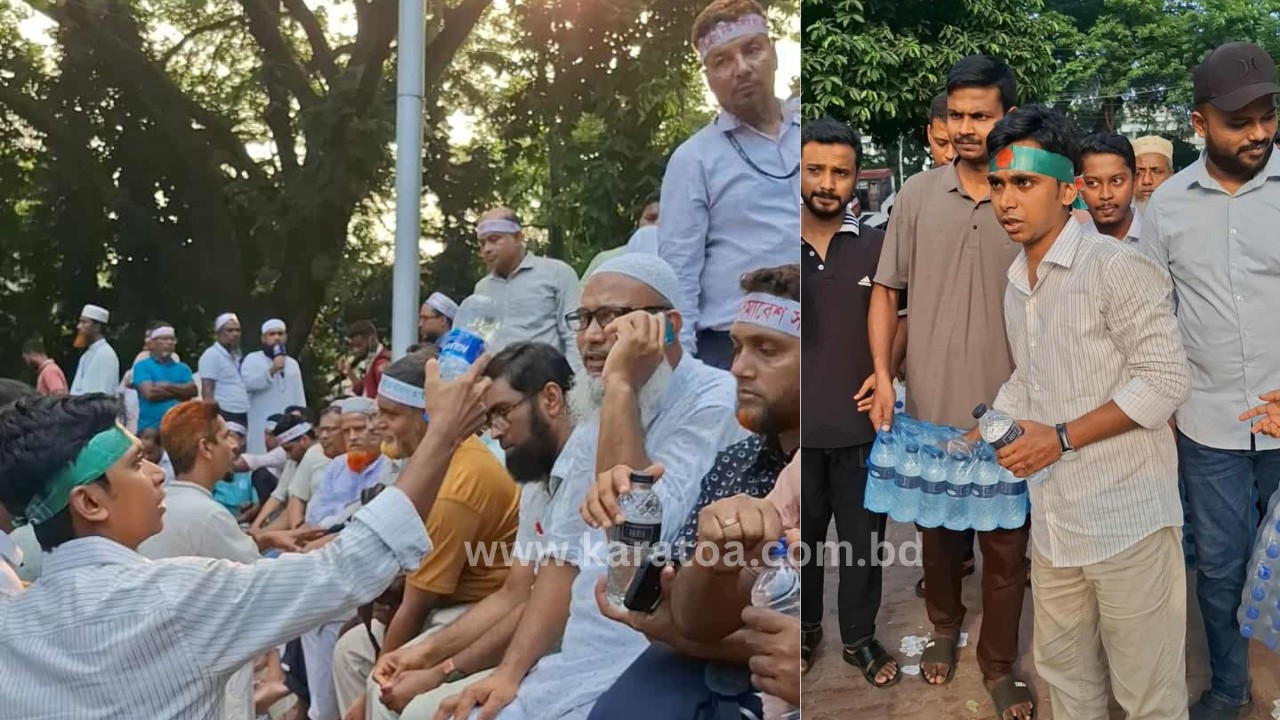 আন্দোলনরত শিক্ষকদের পাশে পানি নিয়ে ছাত্রদল নেতা