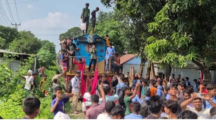 ভৈরবে ট্রেন থামিয়ে ছাত্র-জনতার বিক্ষোভ