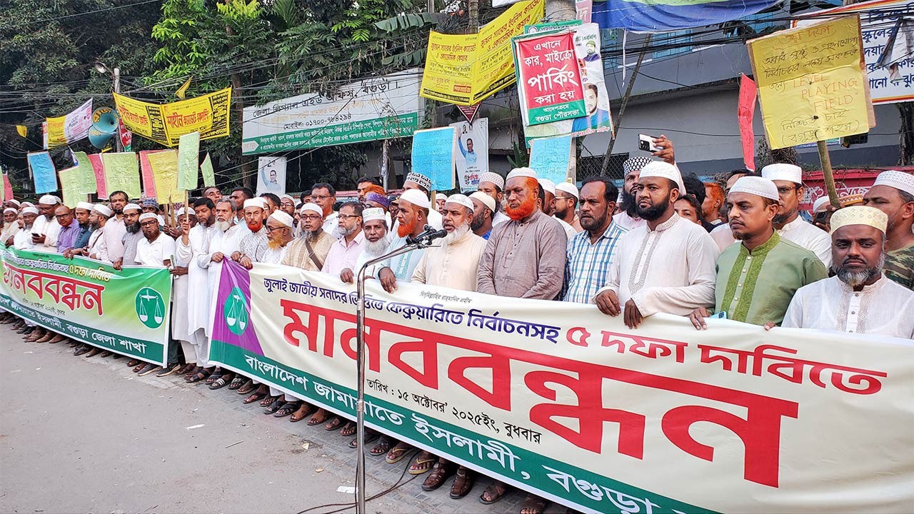 বগুড়ায় জামায়াতের মানববন্ধন অনুষ্ঠিত