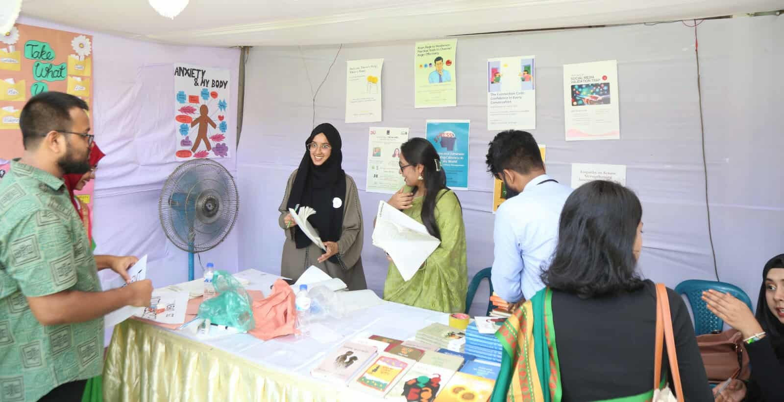 অনুষ্ঠান শেষে অধ্যাপক ড. সায়মা হক বিদিশা টিএসসি প্রাঙ্গণে বিশ্ব মানসিক স্বাস্থ্য দিবস উপলক্ষে স্থাপিত বিভিন্ন স্টল পরিদর্শন করেন।