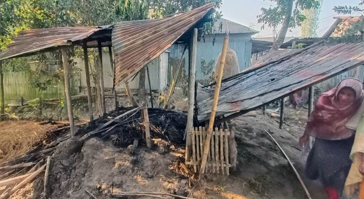 বগুড়ার ধুনটে আগুনে পুড়ে গেল বাড়ি নিঃস্ব কৃষক পরিবার