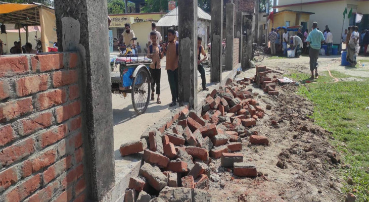 জয়পুরহাটের কালাইয়ে হাতের ঠেলায় নড়ে ইটের গাঁথুনি : প্রাচীর ভেঙে দিল জনতা