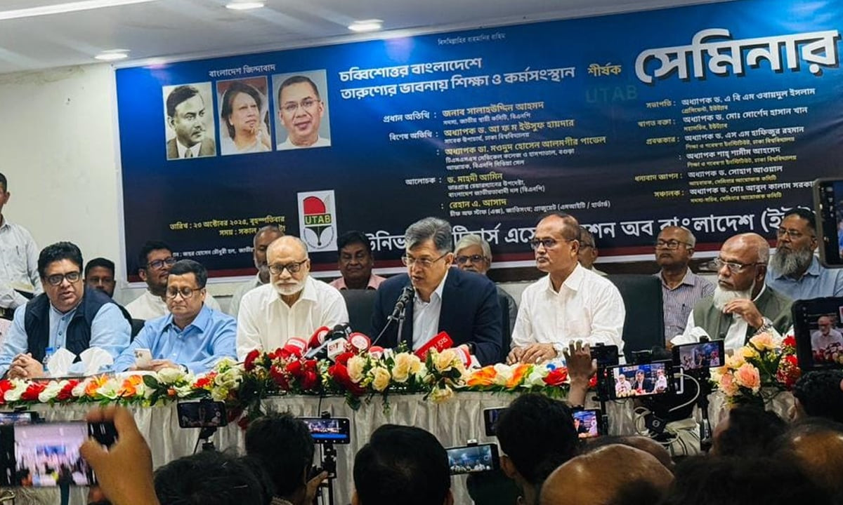 সালাহউদ্দিন আহমদ বলেন, চব্বিশোত্তর বাংলাদেশে আমাদের প্রত্যাশা ও ভাবনা কী, সে বিষয়ে নতুন প্রজন্মের ভাবনাকে গুরুত্ব দিতে হবে। তার মতে, চব্বিশোত্তর বাংলাদেশের প্রধান শিক্ষা হলো—পরিবর্তন। তিনি সবক্ষেত্রে মেধা, জ্ঞান এবং প্রযুক্তিনির্ভর বাংলাদেশ গড়ার আহ্বান জানান। তিনি উল্লেখ করেন, সমাজের যে স্তরেই কাজ করা হোক না কেন, সবাইকে সামাজিক দায়বদ্ধতা থেকে কাজ করতে হবে, যেখানে শিক্ষকদের ভূমিকা ব্যাপক, কারণ তারা তরুণ প্রজন্মকে শেখান।