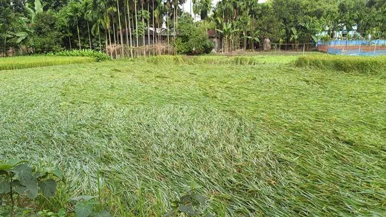 সরেজমিনে দেখা যায়, বৃষ্টির সাথে বাতাসে অনেক ক্ষেতের উঠতি আমন ধান নুয়ে পড়ে পানিতে ডুবে আছে। কৃষকরা বলছেন, এই ধান আর ঘরে তোলার মতো অবস্থায় নেই। নুয়ে পড়া পাকা ধান কোনোমতে কেটে নিলেও আধাপাকা ধানের পুরোটাই নষ্ট হওয়ার পথে। শুধু ধান নয়, গবাদি পশুর প্রধান খাদ্য ধানের খড়ও পঁচে যাওয়ার আশঙ্কা তাদের।