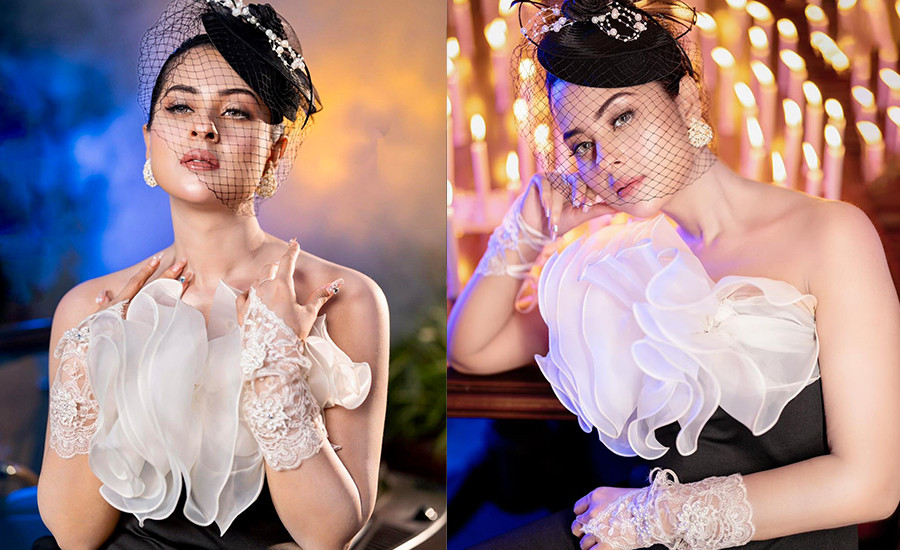 বলা বাহুল্য, এই লুকের মূল আকর্ষণ তার পোশাক ও মেকওভার। সাদা ফুলেল নকশা টপের সঙ্গে কালো স্লিম-ফিট গাউন, যা তৈরি করেছে এলিগ্যান্ট কনট্রাস্ট। এছাড়াও মাথায় ভেইলযুক্ত হ্যাট আর কানে মুক্তার দুল যেন তাকে নিয়ে যায় স্টাইলের অনন্য এক মাত্রায়।