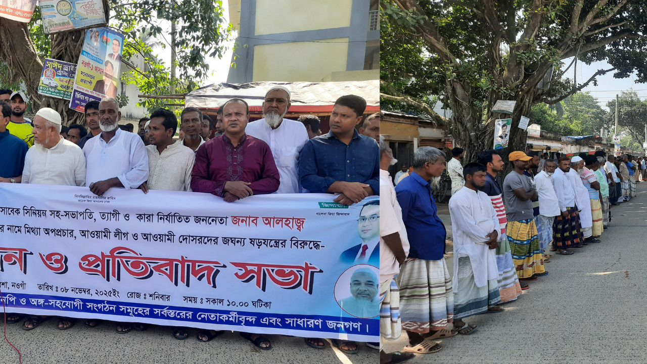 নওগাঁর পোরশায় বিএনপি নেতার বিরুদ্ধে অপপ্রচারের প্রতিবাদে মানববন্ধন