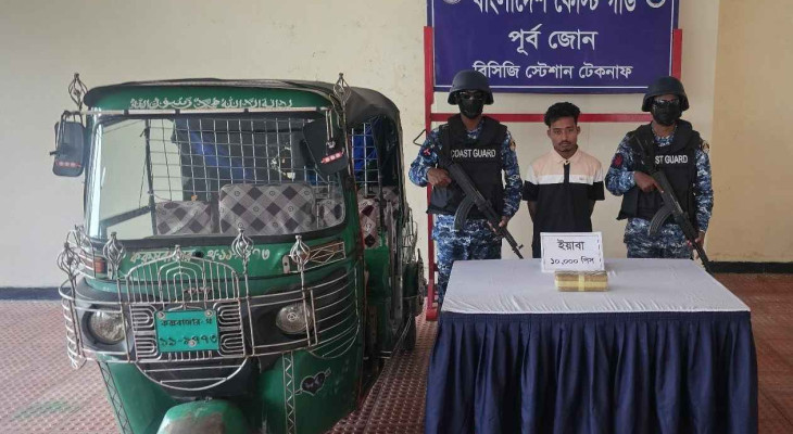 কক্সবাজারের টেকনাফে ১০ হাজার পিস ইয়াবা এক মাদক পাচারকারীকে আটক করেছে কোস্টগার্ড।