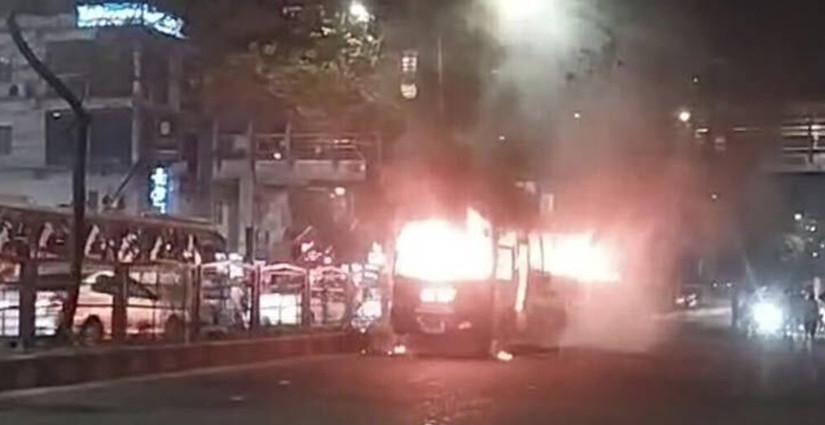 ধানমন্ডির ল্যাবএইড হাসপাতালের সামনে বাসে আগুন