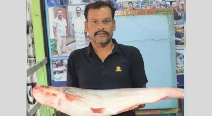 দৌলতদিয়ার ৭ কেজি ৮০০ গ্রাম ওজনের একটি ঢাই মাছ বিক্রি ২৮ হাজার ৮৬০ টাকায়