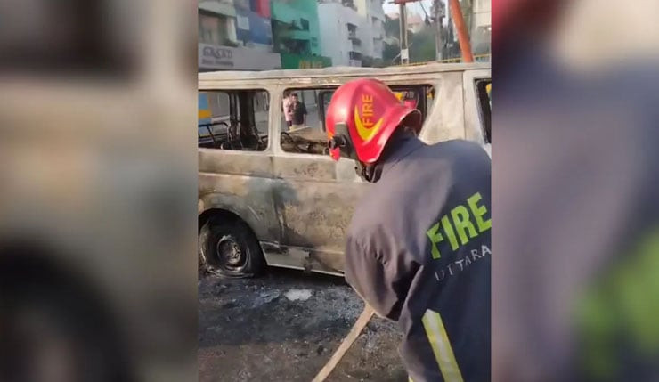 উত্তরায় ইঞ্জিন ওভার হিটে মাইক্রোবাসে আগুন