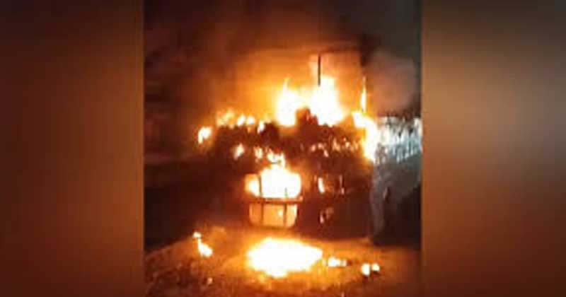 মানিকগঞ্জে মধ্যরাতে স্কুলবাসে আগুন