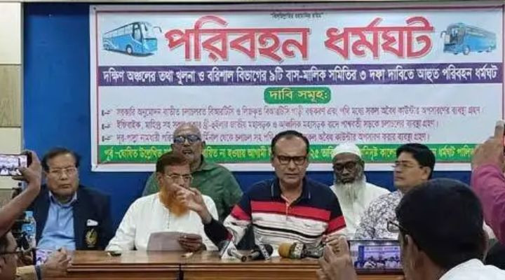 তিনি বলেন, আমাদের তিন দফা দাবি তারা মেনে না নেওয়ায় খুলনা, বাগেরহাট, পিরোজপুর, ঝালকাঠি ও বরিশাল বিভাগের ৭টি জেলার ১০টি বাস মালিক সমিতির পক্ষ থেকে ২ ডিসেম্বর থেকে খুলনা ও বরিশাল বিভাগে ১৮টি রুটে অনির্দিষ্টকালের জন্য পরিবহন ধর্মঘটের আহ্বান জানানো হয়েছে।