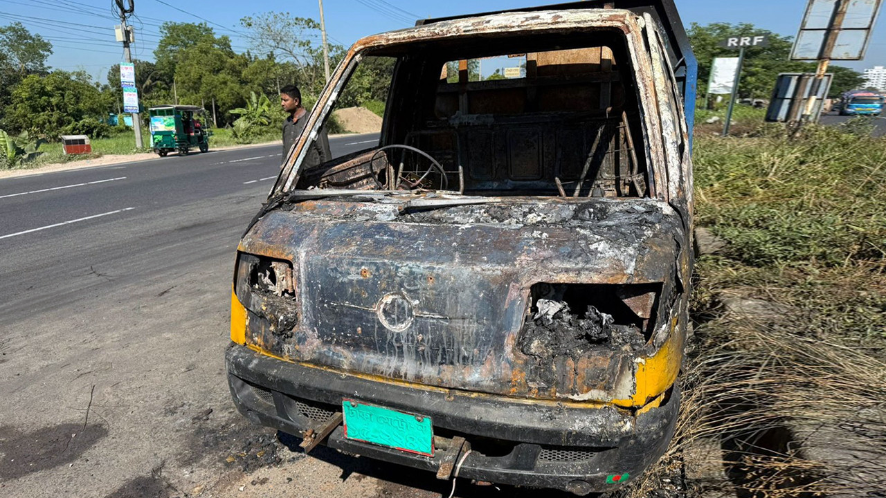 কুমিল্লায় চৌদ্দগ্রামে দাঁড়িয়ে থাকা পিকআপ ভ্যানে অগ্নিসংযোগ