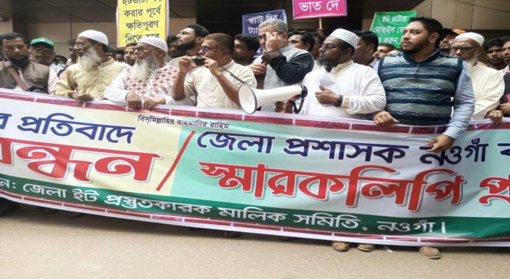 নওগাঁয় ইটভাটা বন্ধের সিদ্ধান্তের প্রতিবাদে মানববন্ধন