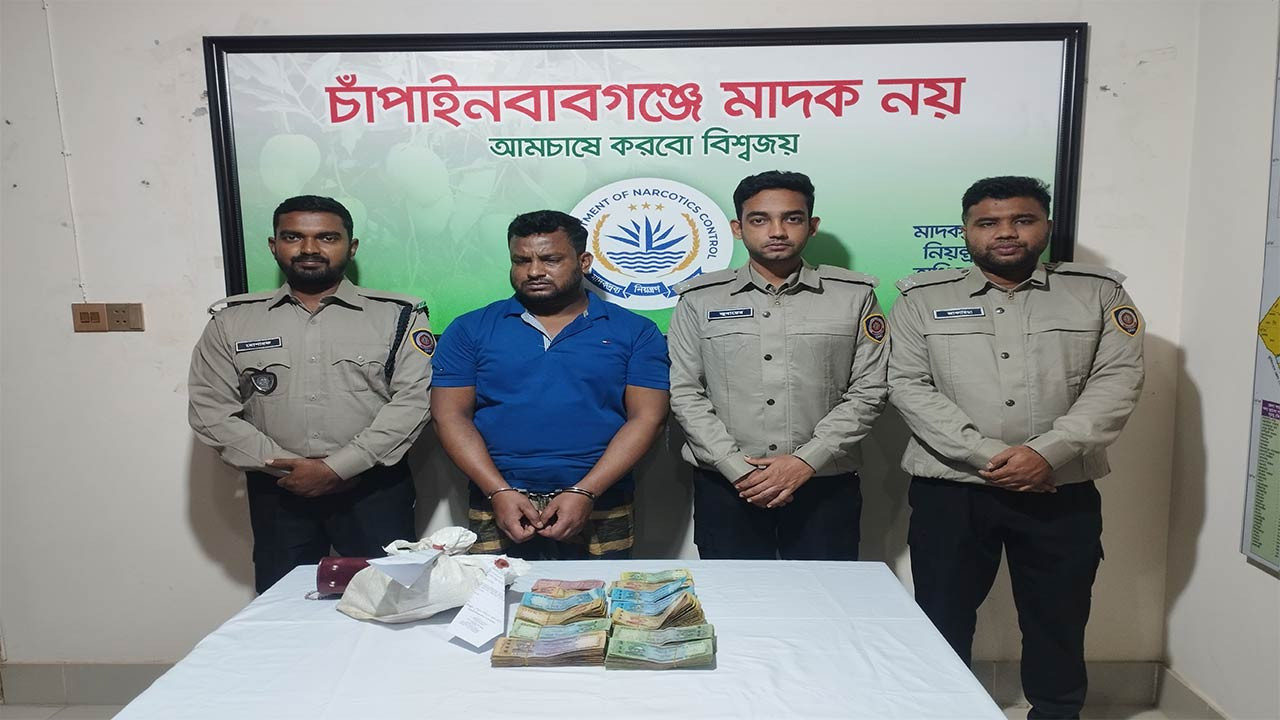 চাঁপাইনবাবগঞ্জে মাদকদ্রব্য ও টাকাসহ মাদক কারবারি গ্রেফতার