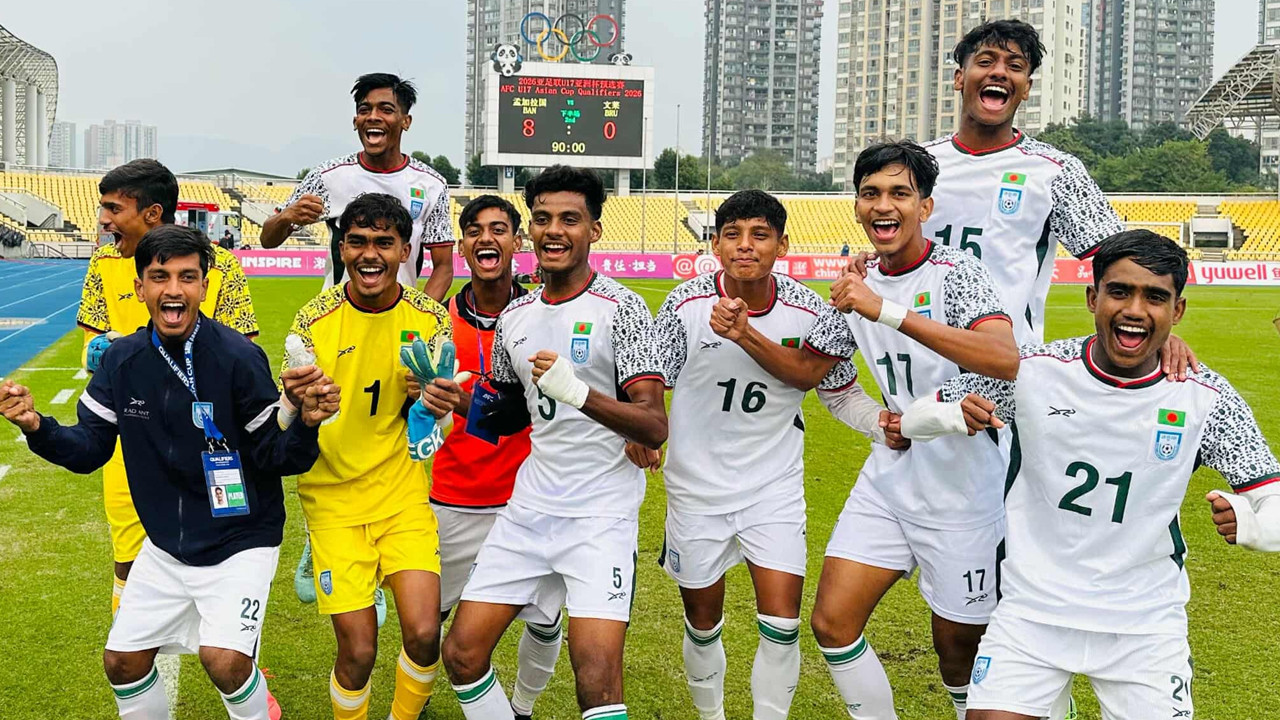 স্পোর্টস ডেস্ক : এশিয়ান কাপ অনূর্ধ্ব ১৭ বাছাইয়ে টানা দ্বিতীয় জয় তুলে নিয়েছে বাংলাদেশ। আজও জিতেছে বড় ব্যবধানে। এ গ্রুপের ম্যাচে গোলাম রব্বানী ছোটনের দল ৮-০ গোলে বিধস্ত করেছে ব্রুনাইকে। অপু ও ফয়সাল জোড়া গোল করেন।