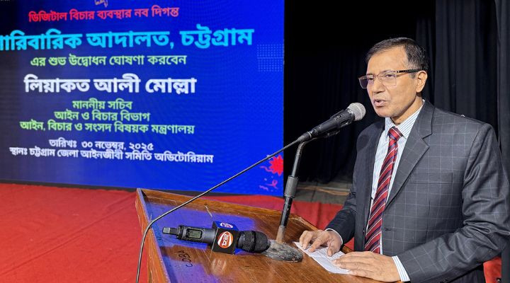 আজ রোববার চট্টগ্রাম জেলা আইনজীবী সমিতির মিলনায়তনে ই-পারিবারিক আদালত চট্টগ্রাম এর উদ্বোধন অনুষ্ঠানে এই সব কথা বলেন তিনি।