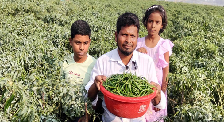 বগুড়ার শাজাহানপুরে হাইব্রিড মরিচের ফলনে রেকর্ড ভঙ্গ, আনন্দিত চাষি পরিবার