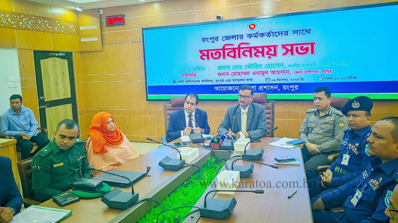 তিনি আজ শনিবার (৬ ডিসেম্বর) সকালে জেলা প্রশাসকের সম্মেলন কক্ষে রংপুর জেলার কর্মকর্তাদের সঙ্গে মতবিনিময় সভায় প্রধান অতিথির বক্তব্যে এসব কথা বলেন। রংপুরের জেলা প্রশাসক মোহাম্মদ এনামুল আহসানের সভাপতিত্বে সভায় বক্তব্য রাখেন জেলা পুলিশ সুপার মোহাম্মদ মারুফাত হুসাইন, সিভিল সার্জন ডা. শাহীন সুলতানা, মেট্রোপলিটন পুলিশের উপকমিশনার (অপরাধ) তোফায়েল আহমেদ, জেলা প্রাণিসম্পদ কর্মকর্তা ডা. আবু ছাইদ। এর আগে উত্তরাঞ্চলের অগ্রযাত্রার কেন্দ্রবিন্দু রংপুর শিরোনামে একটা ভিডিও চিত্র দেখানো হয়।