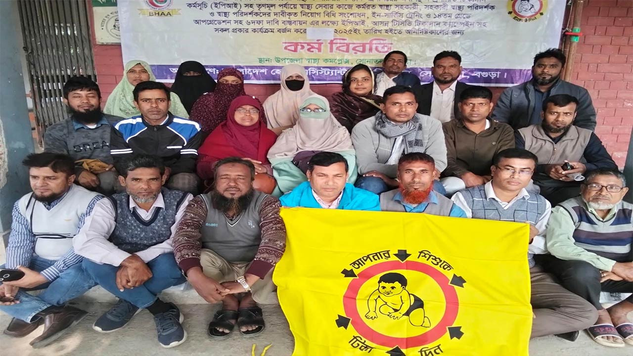 বগুড়ার সোনাতলায় স্বাস্থ্য সহকারীদের কর্মবিরতি পালন