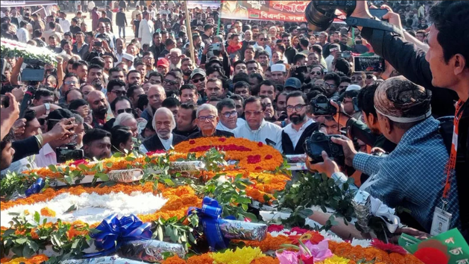 বিএনপি চেয়ারপার্সন ও ভারপ্রাপ্ত চেয়ারম্যান তারেক রহমানের পক্ষে শহীদ বুদ্ধিজীবীদের প্রতি শ্রদ্ধা জানিয়েছে বিএনপি। রোববার (১৪ ডিসেম্বর) সকালে বুদ্ধিজীবী দিবসে মিরপুরের বুদ্ধিজীবী স্মৃতিসৌধে পুস্পস্তবক অর্পণ করেন বিএনপি মহাসচিব মির্জা ফখরুল ইসলাম আলমগীর।এসময় তিনি বলেন, তারেক রহমানের যে নতুন বাংলাদেশ গড়ার স্বপ্ন তা প্রতিষ্ঠিত হবে।মির্জা ফখরুল বলেন, বিজয়ের আগে দেশকে মেধাশুণ্য করার পরিকল্পনা করা হয়েছিলো। তবে তাতে সফল হয়নি পাকিস্তান বাহিনী।