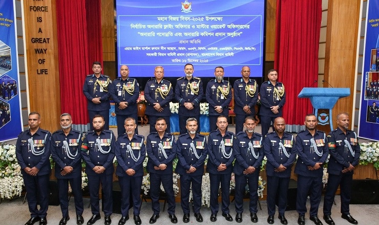 মহান বিজয় দিবস–২০২৫ উপলক্ষে বাংলাদেশ বিমান বাহিনীতে নির্বাচিত সদস্যদের অনারারি কমিশন ও অনারারি পদোন্নতি প্রদান করা হয়েছে।