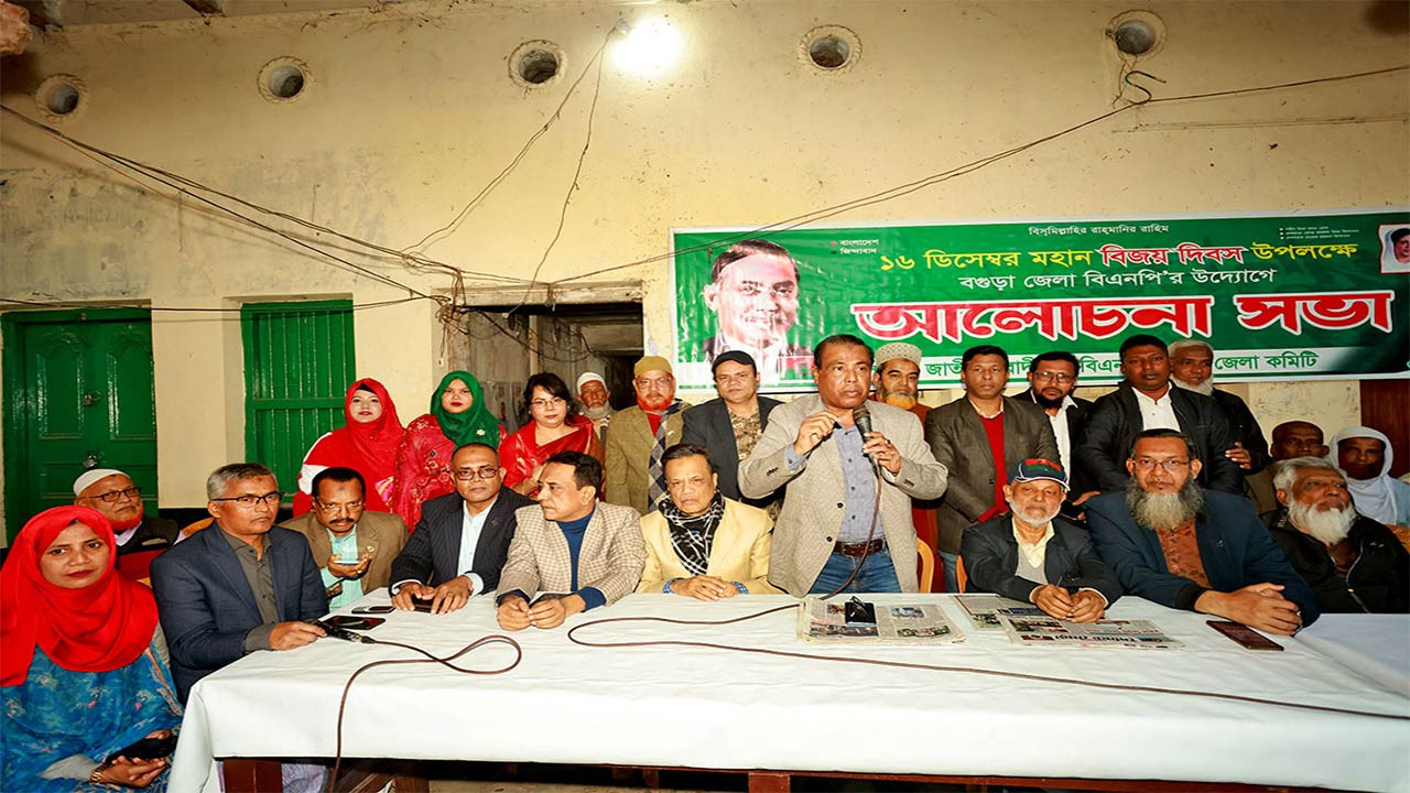 স্টাফ রিপোর্টার: মহান বিজয় দিবস উপলক্ষে বগুড়া জেলা বিএনপির আলোচনা সভায় বক্তারা বলেছেন, ফ্যাসিস্টের পরিকল্পিত সন্ত্রাসী কার্যক্রম ও রক্ত চক্ষু উপেক্ষা করে আগামী নির্বাচনকে অর্থবহ করে তুলতে বিএনপির নেতাকর্মিদেরকে অগ্রণী ভূমিকা পালন করতে হবে। আসন্ন নির্বাচন পন্ড হয়ে গেলে জাতি গভীর সংকটে পতিত হবে।