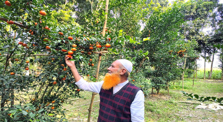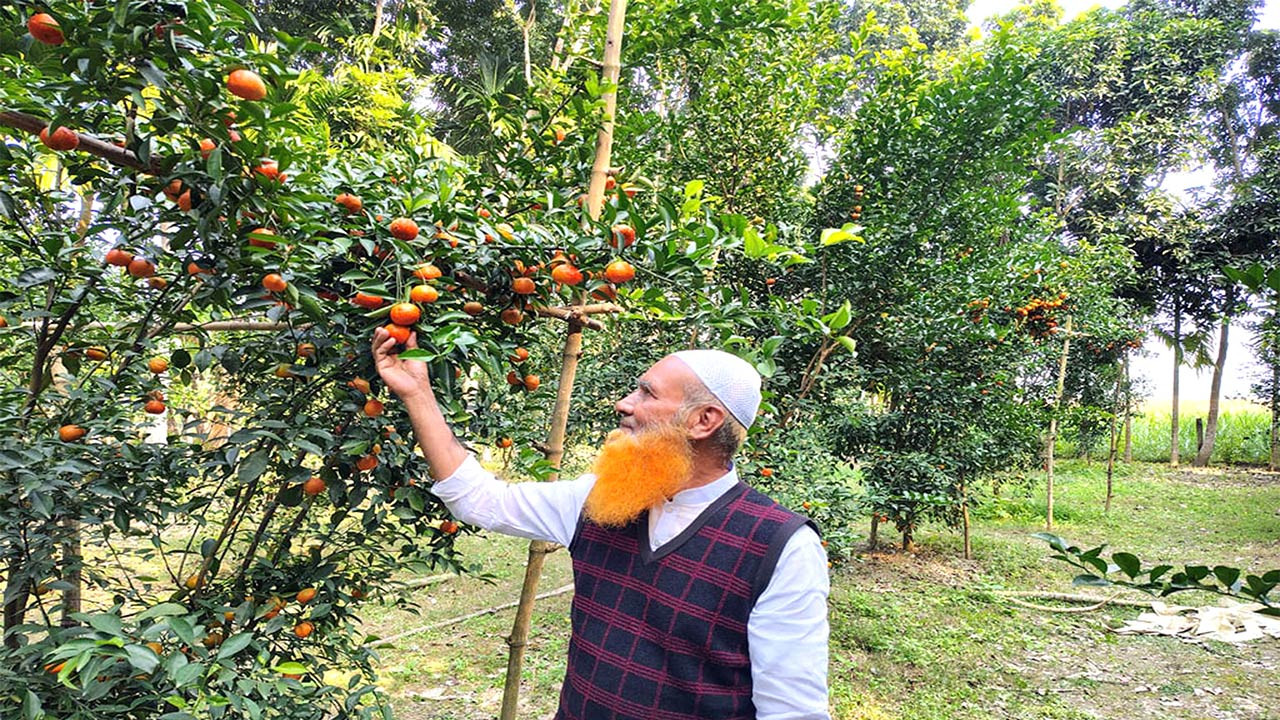 পাবনার চাটমোহরে সমতলে কমলা চাষে সফল কৃষক খয়বর