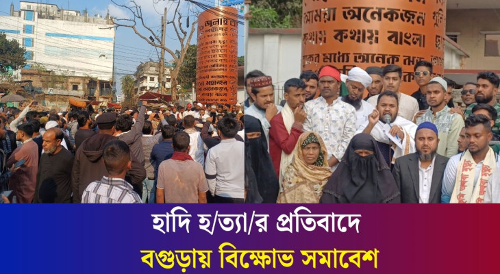 হাদি হ/ত্যা/র প্রতিবাদে বগুড়ায় বি/ক্ষো/ভ সমাবেশ