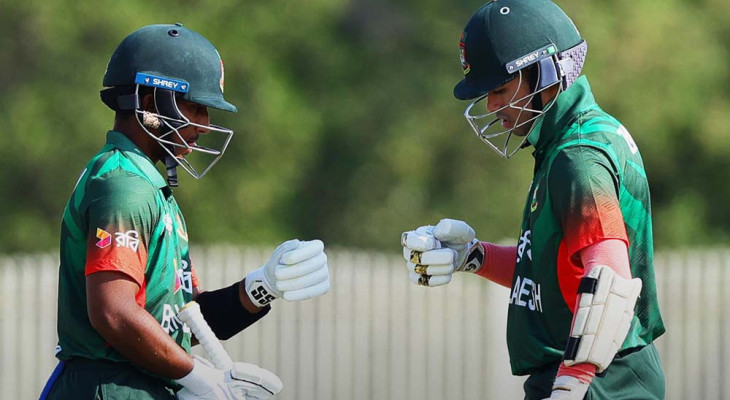 স্পোর্টস ডেস্কঃ এসিসি অনূর্ধ্ব-১৯ এশিয়া কাপের সেমিফাইনালে পাকিস্তানের কাছে বড় ব্যবধানে হেরে টুর্নামেন্ট থেকে বিদায় নিয়েছে ডিফেন্ডিং চ্যাম্পিয়ন বাংলাদেশ। দুবাইয়ে অনুষ্ঠিত এই ম্যাচে টস হেরে আগে ব্যাট করতে নেমে ১২১ রানেই অলআউট হয়ে যায় জুনিয়র টাইগাররা। জবাবে মাত্র ১৬.৩ ওভারে ৮ উইকেটের বিশাল জয় তুলে নিয়ে ফাইনালে পা রাখে পাকিস্তান।