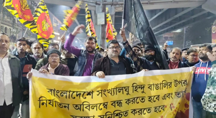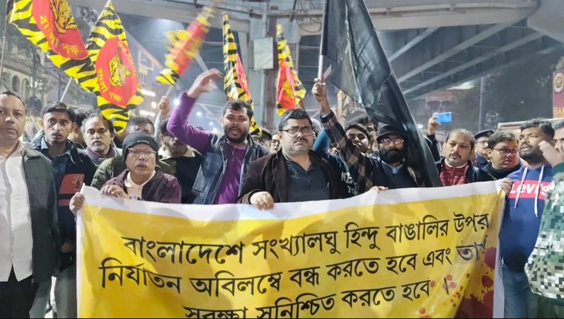 আরও পড়ুনবিক্ষোভকারীরা দাবি করেন, ১৯৭১ সালের মতো ভারতের আবারও বাংলাদেশের পরিস্থিতিতে হস্তক্ষেপ করা উচিত। সংগঠনটির নেতা গর্গ চ্যাটার্জি বলেন, বাংলাদেশে সংখ্যালঘুদের ওপর হামলার বিষয়টি বিশ্ববাসীর সামনে তুলে ধরা হবে। তিনি দাবি করেন, তাদের কর্মসূচি শান্তিপূর্ণ ছিল এবং কোনো সহিংসতার উদ্দেশ্য ছিল না।