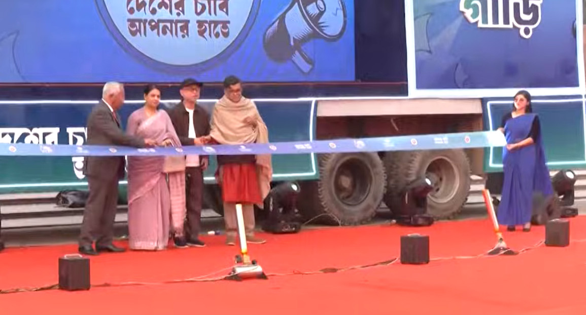 ফিতা কেটে ‘ভোটের গাড়ি’র প্রচার শুরু করেন পরিবেশ, বন ও জলবায়ু পরিবর্তন এবং তথ্য ও সম্প্রচার মন্ত্রণালয়ের উপদেষ্টা সৈয়দা রিজওয়ানা হাসান ও সংস্কৃতি উপদেষ্টা মোস্তফা সরয়ার ফারুকী  এবং  নির্বাচন কমিশন সচিব আখতার আহমেদ।