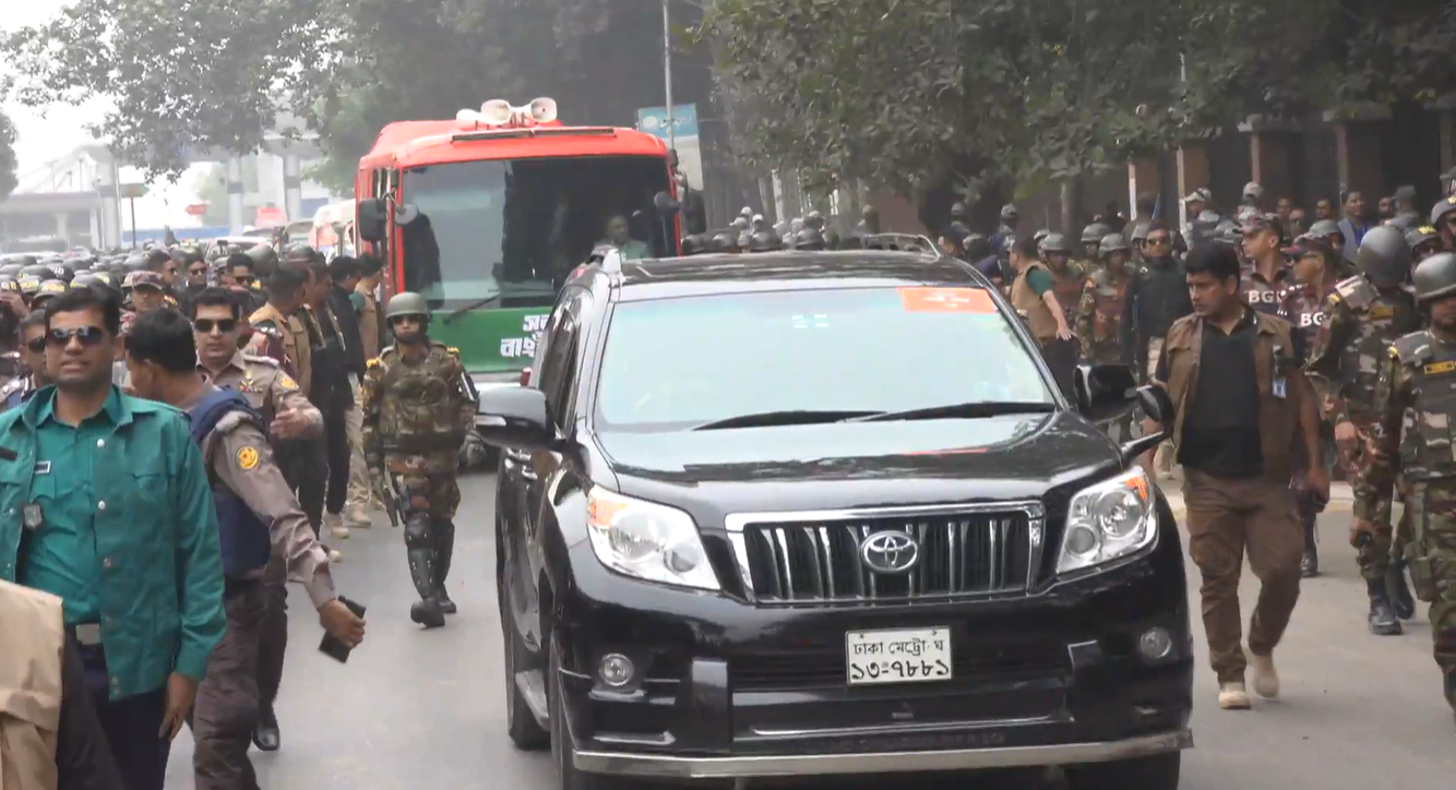 বিমানবন্দরে যাবতীয় আনুষ্ঠানিকতা শেষে হযরত শাহজালাল আন্তর্জাতিক বিমানবন্দরের সিআইপি গেটে বুলেটপ্রুফ বাসে সড়ক পথে রওয়না হয়েছেন বিএনপি’র ভারপ্রাপ্ত চেয়ারম্যান তারেক। কঠোর নিরাপত্তা বলয়ের মধ্যে দিয়ে তাকে বহনকারী বাসটি বিমানবন্দর এলাকা থেকে রওয়ানা হয়।
