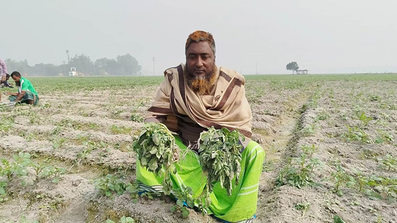 বগুড়ার শেরপুরে ৩ বিঘা জমির আলুর গাছ উপড়ে ফেলেছে দুর্বৃত্তরা