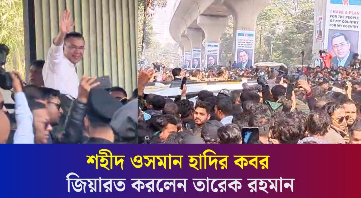 শহীদ হাদির কবর জিয়ারত শেষে নেতাকর্মীদের অভ্যর্থনা জানাচ্ছেন তারেক রহমান