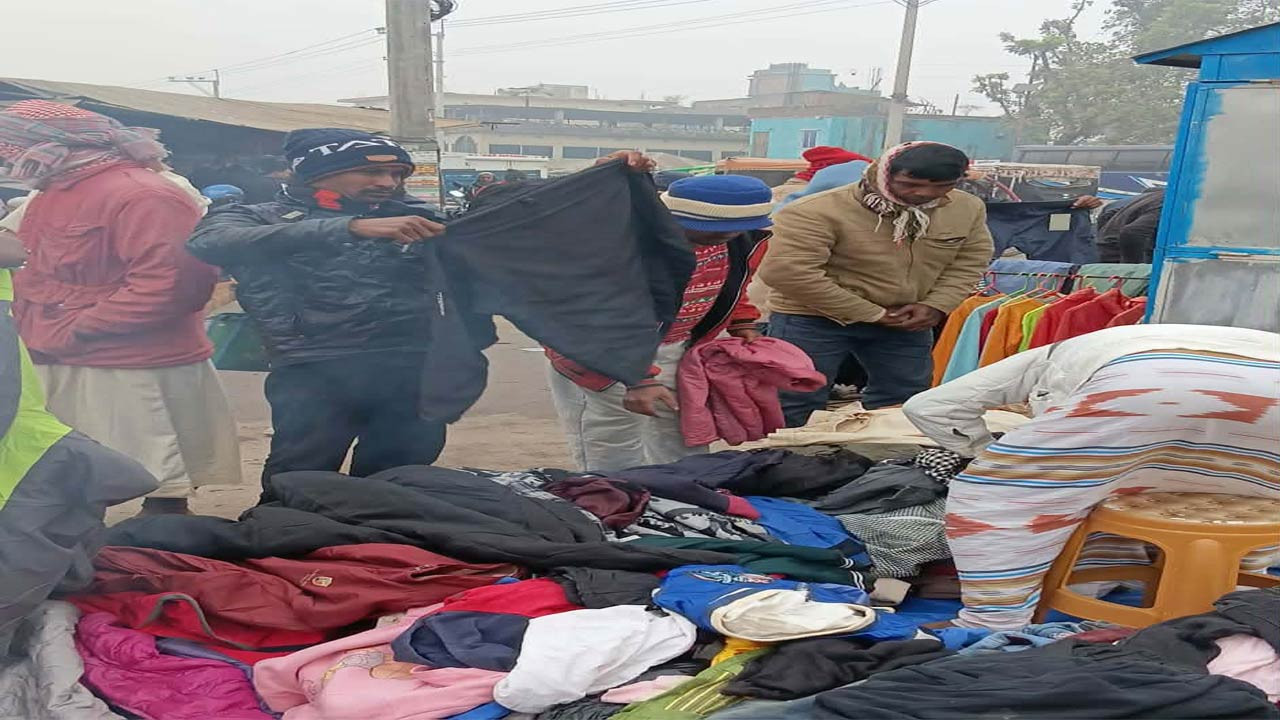 নাটোরের সিংড়ার ফুটপাতে জমজমাট শীতের কাপড় বেচাকেনা