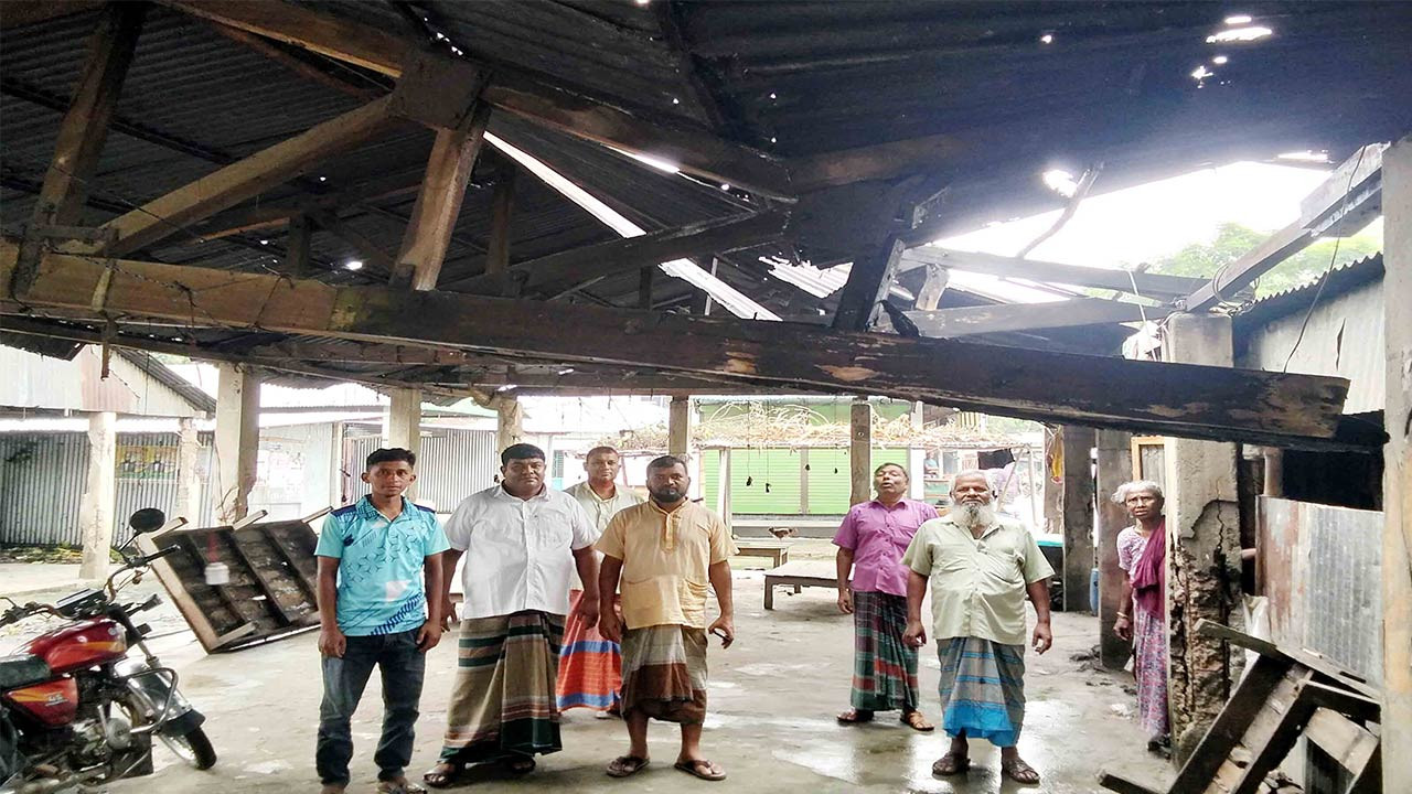 বগুড়ার সোনাতলার করমজা হাটের সেড ঘরের টিনের চালার দুরাবস্থা, সংস্কারের উদ্যোগ নেই