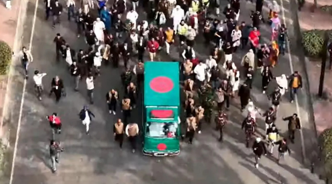 সাবেক প্রধানমন্ত্রী বেগম খালেদা জিয়ার মরদেহ রাজধানীর মানিক মিয়া অ্যাভিনিউয়ে জানাজাস্থলে নেওয়া হয়েছে। আজ বুধবার বেলা পৌনে ৩টার লাল-সবুজ পতাকায় মোড়ানো ফ্রিজার ভ্যানে করে তার মরদেহ নেওয়া হয়।