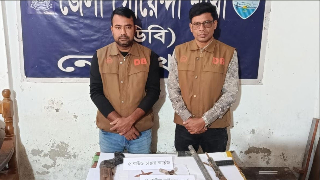 আরও পড়ুনডিবি জেলা গোয়েন্দা শাখার ভারপ্রাপ্ত কর্মকর্তা মোহাম্মদ আশরাফ উদ্দিন বলেন, অবৈধ অস্ত্রের সন্ধান পেয়ে অভিযান পরিচালনা করা হয়েছে। উদ্ধারকৃত এলজি, পাইপগান ও কার্তুজের বিষয়ে আইনানুগ ব্যবস্থা গ্রহণ প্রক্রিয়াধীন রয়েছে।