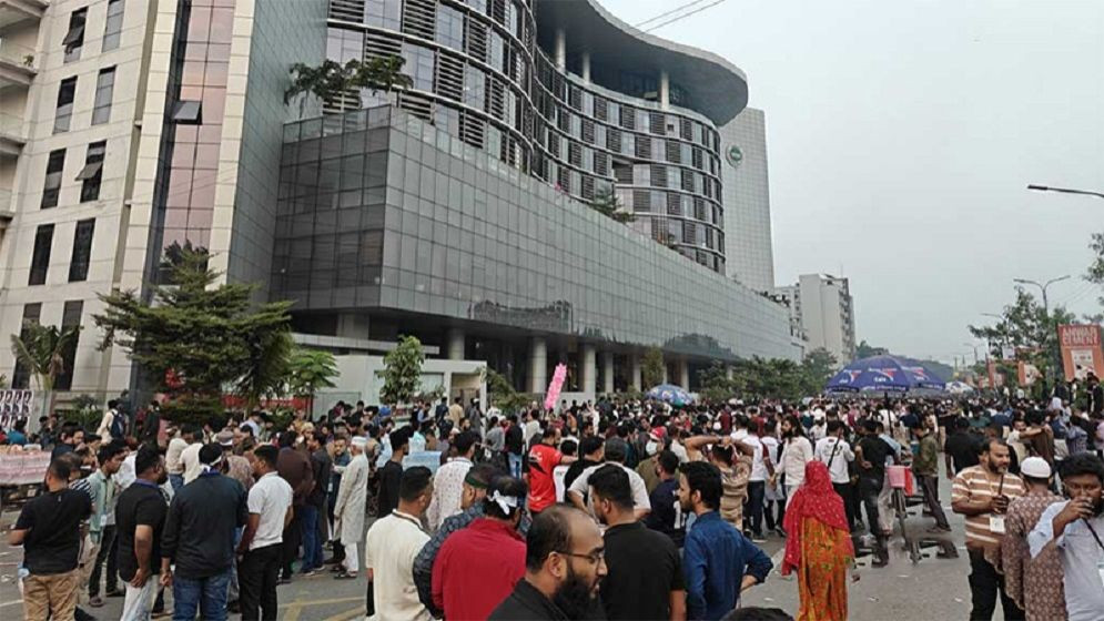 প্রতিষ্ঠানটির এক কর্মকর্তা বলেন, ‘হঠাৎ করে ভাঙচুর শুরু হয়েছে। রাস্তা থেকে কয়েকশ বিক্ষোভকারী অবস্থান নিয়ে ভবনে ইটপাটকেল ছুড়ছে। এতে ভবনের বিভিন্ন কাঁচ ভেঙে গেছে। ছুটি হওয়ার পরেও আমরা কেউ বের হতে পারছি না।’