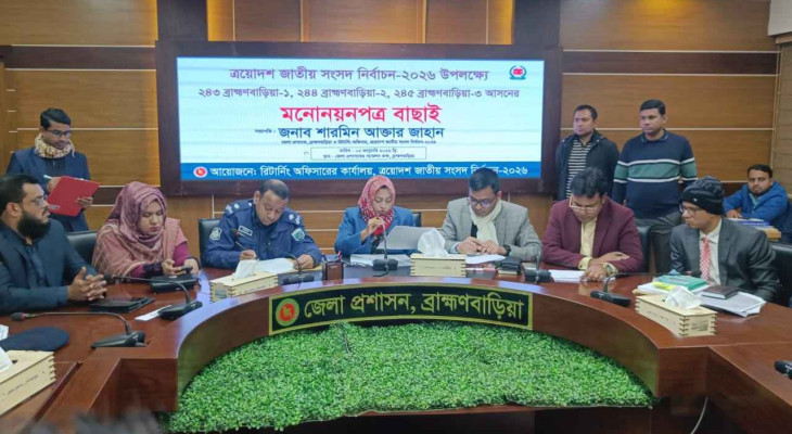 শুক্রবার (২ ডিসেম্বর) বেলা ১১টা থেকে প্রথম ধাপে ব্রাহ্মণবাড়িয়া-১ (নাসিরনগর), ব্রাহ্মণবাড়িয়া-২ (সরাইল, আশুগঞ্জ-বিজয়নগরের দুটি ইউনিয়ন) এবং ব্রাহ্মণবাড়িয়া-৩ (সদর-বিজয়নগর) এই তিনটি আসনের ৩৬ জন প্রার্থীর মনোনয়ন যাচাই-বাছাই সম্পন্ন করা হয়।