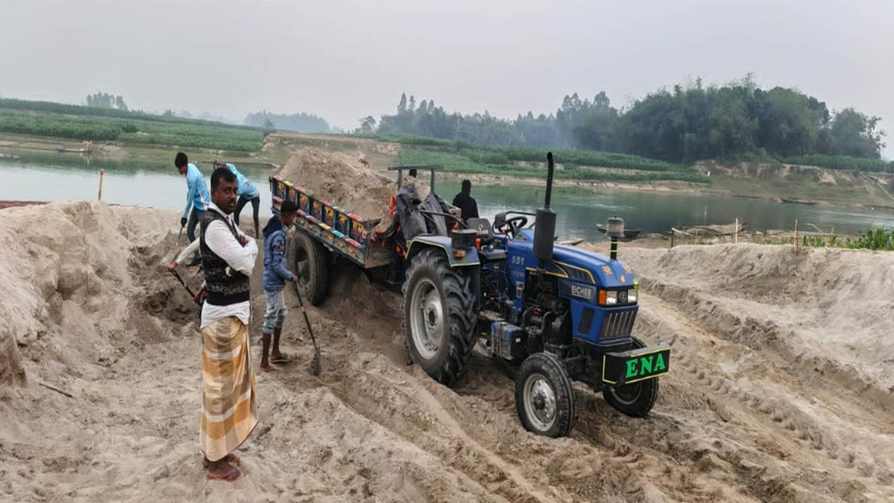 দিনাজপুরের ঘোড়াঘাটে করতোয়া নদী থেকে বালু তোলায় গ্রেফতার ২