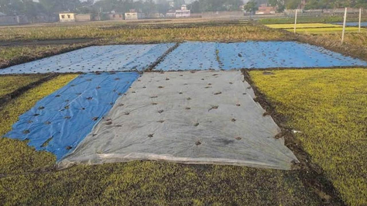 বগুড়ার শিবগঞ্জে পলিথিন ব্যবহার করে ইরির বীজতলা রক্ষার চেষ্টা