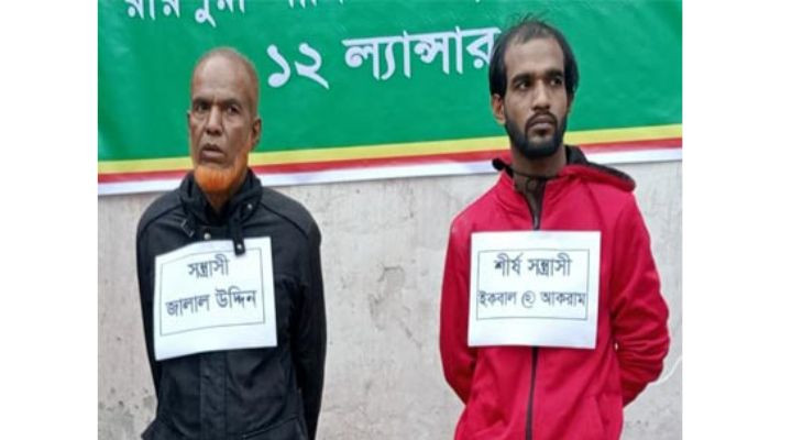 নরসিংদীর রায়পুরায় সেনাবাহিনী ও পুলিশের যৌথ অভিযানে দুই শীর্ষ সন্ত্রাসী বাবা ও ছেলেকে গ্রেপ্তার করা হয়েছে। অভিযানকালে তাদের কাছ থেকে বিপুল পরিমাণ অবৈধ অস্ত্র, গোলাবারুদ ও দেশীয় ধারাল অস্ত্র জব্দ করা হয়।